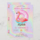 Cool Pink Flamingos Pool Float Holographic Invitation