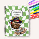 video game controller breaking trough a green and white retro checkered background. To make it extra special, it is also monogrammed and personalized with name or initials or any text you like. This cool notebook is perfect for video games lovers, a great addition to your kids school supplies.