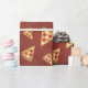 Cool and fun pizza slices pattern on rustic red - unique gift wrap for foodies, restaurateurs, pizzerias.. Juicy vector made pizza with crunchy crust, cheese, salami, champignon mushrooms, olives and a sprinkle of oregano.