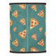 Cool and fun pizza slices pattern on rustic dark teal green blue - unique gift for foodies, restaurateurs, pizzerias.. Juicy vector made pizza with crunchy crust, cheese, salami, champignon mushrooms, olives and a sprinkle of oregano.