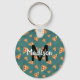 Cool pizza slices vintage teal pattern Monogram Keychain