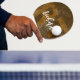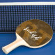 A stylish and modern design on a dark brown table-tennis-paddle with aged effects... to personalize with your own name and initials.