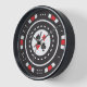 The size of the clock is dramatic and the abstract alcohol ink design is soothing and intricate at the same time. I chose the black frame that adds pop to the blue and gold design. The gold printing would be better in a slightly darker or larger font. I love it and I’m looking for just the right place in ny new apartment. I would recommend this clock for a personal gift or a present. I feel that the quality is excellent for the money! I’m a bit of a clock nut so I’m pretty particular about my purchases. The clock is larger in diameter than many if the clocks I have, so it stands out very well. I think a slightly darker printing color and a moderately larger size would best suit a professional decor or add more impact in a work place item.