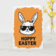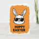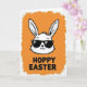 This design shows a white rabbit head centered on the card, with long upright ears and a softly fluffy outline that feels friendly and a little flirty 🐰. Dark sunglasses sit across its face, adding a cool contrast that reads like a confident wink without needing a full expression. The rabbit is set against a rich orange rectangle with rough, brushy edges, like a painted frame that makes the character stand out. A wide white border surrounds the orange area, giving the layout plenty of breathing room and keeping the focus on the rabbit. Under the illustration, a short Easter message appears in thick, simple lettering, aligned centrally and easy to read. The text is black, matching the strong black outlines that define the rabbit’s features and keep the shapes crisp against the white fur. Light gray shading inside the rabbit adds depth, especially around the cheeks and under the sunglasses, while a small 🌷 accent can be imagined alongside the seasonal wording. The orange panel has uneven painted edges, and the rabbit’s ears reach close to the top of that rectangle.