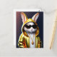 Cute cool with humanoid white bunny rabbit wearing a golden yellow hoodie, neck chain and dark sunglasses.