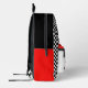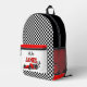 This Cool Race Car Theme Kid's Back to school Backpack Featuring a Red Formula Car and Flag Race Icon on a Black and White Checkered Background. Perfect Gift for Race Cars Loves. Easy to Personalize for an Awesome Gift for Birthday, Christmas, Holidays or any Special Occasion! Need help? or more matching products please feel free to send us a message about it in the chat option.