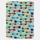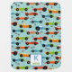 Cool Race Cars Personalized Kids Pattern. Side view of sporty cars, racing flags.