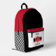 This back to school backpack is ideal for the little one in your life who loves their racing cars. The design features a cool red racing car and checkered flag. The backpack can be personalized with the inclusion of your little one's name or you can add your own text.