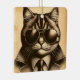 This retro-style art shows a black line drawing on sepia of a cat wearing aviator sunglasses and in a businessman, detective, policeman, or spy suit.