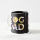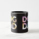Nothing subtle with this modern and hip black Dog Dad Mug. Punched out letters reveal translucent shapes background. Designed by Quirkytown Creative. Image © Doug Davis. www.zazzle.com/store/QuirkyTownCreative