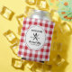 The perfect can cooler for your summer bbq or cookout featuring a "logo style" design with crisscrossed grilling utensils and a flame set against a red gingham check background pattern. Personalize by adding your name, date and another line of custom text. Your guest will love this cool party favor. Check out our other summer event items by clicking on the Colorfulgalshop below.