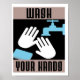 Wash Your Hands sign with original artwork based on the style of the 1930s WPA posters. Hand icons, a vintage faucet shape, and art deco font really give this a cool and unique look. They look great as a set. Nice retro art for the kitchen or food service, or for the bathroom as a reminder to kids. Also makes a tasteful reminder to business employees to always wash your hands before returning to work. Choose a larger size poster or a heavier paper if you like.
