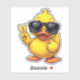 This sticker features one cool rubber duckie, flashing the peace sign white wearing his shades!