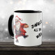 Cool hipster Santa Claus Jingles all the Way on this fun Holiday mug. The image is printed twice on the mug, with black text between.