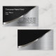 Cool business cards template designed with artwork that mimics a silver metallic on both sides and black faux textured backdrop that adds some cool factor to the design. Created for the automotive industry, construction, or industrial services such as welding or metalwork.