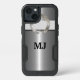 Here's a really cool Otterbox smartphone case design for iPhone 6 or 6s including a silver metallic look digital background digitally printed on the cover wood name initials designed so that you can personalize them online.