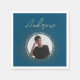 Celebrate your graduation in style with these chic, modern photo napkins. Featuring a sleek, dark teal blue background, the napkins have a minimalist design with a customizable circular photo. Your name is elegantly handwritten in gold-beige modern script, complemented by simple white text for other details. Personalize the napkins by changing the photo and text to make them uniquely yours.
