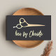 Cool customizable business card template with faux gold scissors icon. Perfect for beauty salon, hairstylist.