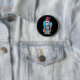 Button with an illustration of a humorous skeleton. Wearing a top hat, holding a drink. He has a big smile on his face. Cute and spooky fun for Halloween.