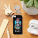 Personalized keychain with an illustration of a humorous skeleton. Wearing a top hat, holding a drink. He has a big smile on his face. Cute and spooky fun for Halloween.