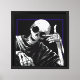 This design features a laid-back skeleton with a confident grin and a cool, modern pair of round sunglasses. The skeleton is in a dynamic pose, pointing a finger, giving off a relaxed, carefree vibe. The black and white, comic-style illustration with a clean, dark purple border makes it an edgy, yet stylish piece of art. It's perfect for anyone who loves gothic aesthetics, retro vibes, or just wants a fun and unique design for Halloween or any time of year.
