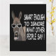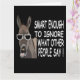Cool Smart Donkey Greeting Card designed by Nisha Prabhu. Cute smart donkey in cool sunglass with playful text ''Smart Enough To Ignore What Other People Say.'' Send a smile with this Cool Smart Donkey Greeting Card! Brighten someone's day with this charming greeting card featuring a cool smart donkey design. Whether you're celebrating a birthday, sending well wishes, or simply saying hello, this card is perfect for any occasion. The playful graphic and vibrant colors make this card a standout choice for those who appreciate a touch of whimsy. Printed on high-quality cardstock with a smooth finish, this greeting card exudes both style and durability. With plenty of space inside for your personal message, this cool smart donkey card is a delightful way to show you care. Spread joy and laughter with this unique and fun greeting card that is sure to make a lasting impression!