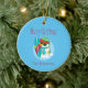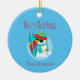 A cool Christmas ceramic ornament, this design features a beautiful blue background with a snowman holding a surfboard. A great gift for the surfer, personalize yours today!