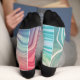 This fun Halloween socks are bright and colorful. The small print is crisp and shows the fun details. The softness of the socks feels nice on my feet and ankles. .