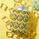 Cool Spilled Stained Happy Smiling faces on gold yellow.