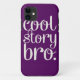 Personalise your style. Add a name, or even a nickname, to make this case the perfect gift for him, her, or even yourself! Just click "customise it" to add images and text. Get this cream on purple swirly text "cool story bro" design on a wide range of products!