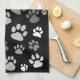 Cool Stylish Black & White Scattered Paw Prints Kitchen Towel
