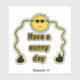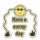 Sticker with cool yellow sun with sunglasses, long hands and text HAVE A SUNNY DAY