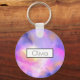 A dreamy personalized keychain with a nice combination of soft pastels and bright colors. A colorful abstract painting with a cosmic space image in pink, purple and yellow watercolors. The colors blend and mix together creating luminous ethereal clouds with little twinkling stars peppered throughout.
