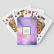 A dreamy monogram playing cards with a nice combination of soft pastels and bright colors. A colorful abstract painting with a cosmic space image in pink, purple and yellow watercolors. The colors blend and mix together creating luminous ethereal clouds with little twinkling stars peppered throughout. Personalize with a name and monogram initial.