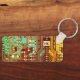 Cool printed circuit inspired creation with a retro steampunk vibe in teal and yellow colors to personalize with your initials.