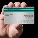 Cool technology business cards with unique styled company name emblem, metal looking background printed on the front and easy text layout to personalize. Best business cards template for themes related to computers, mobile tech, or technolog.