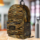 Super cool backpack featuring a jungle tiger stripe pattern and personalized name label. Add an extra bonus line of text - phone number, team name, saying, etc. - or delete. Roomy enough for books, computer, sports gear and more - or use as a travel or weekend bag too. Stylish and colorful, yet very functional - win, win.