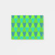 This Post-It notepad has a Bauhaus design of repeating trapezoids in shades of blue and green.