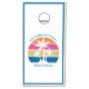 This cute tropical palm tree sunset cornhole set is the perfect addition to a spring break beach house or island vacation home. Personalize with your own text in beautiful blue above and below the pretty pink sunset.
