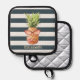 Cool Tropical Pineapple Navy Blue Stripes Pot Holder