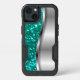Here is a cool simulated turquoise sparkling glitter smartphone case with silver metal looking background old digitally printed on the cover to add character and style to your smartphone case. Design for ladies and girls I like a little bling in their life.