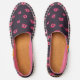 Vampire lips and fangs espadrilles with a cool; pattern of bright pink mouths with vampire teeth over dark purple background. This dark girly pattern is great for Halloween.