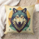 Cool vintage wolf Geometric rustic art Throw Pillow