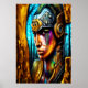 A colorful portrait of a cool warrior with a unique warrior helmet on his head. This is a AI generated art.