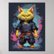 Cool Watercolor Yellow Ninja Cat Warrior Poster