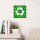 COOL WHITE RECYCLE SYMBOL GO GREEN SQUARE WALL CLOCK