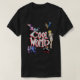 My 11 yo wore adult XL (5’7” 165#). The 8yo is small framed. She wore adult small and tied it in the back. Grandma wore adult large with long sleeve shirt underneath. Tall girl adult medium. Dark haired male adult large. Good quality dark Heather gray, Gildan brand shirt. -it was next up from basic choice and cost about $20 per shirt. Not too thick or thin. Washed and dried well, no major shrinkage. Not see-through. Can wear a bra under it fine. Screen print is just as shown and well done, front and back.