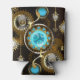 Turquoise lenses with an antique watch with brass gears and golden keys on rusty, brown background. Steampunk style.