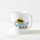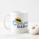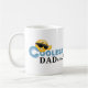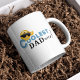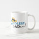 Dad will special every morning drinking his favorite beverage out of this mug knowing just how much you admire him! Boldt font spells out "Coolest Dad ever!" with a happy emoji wearing sunglasses peeking out at the top.