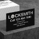 Cool modern Locksmith theme business cards custom design template created with a cool graphic of the word Locksmith that has a deadbolt lock as part of the design and classic simple layout for residential, commercial, or automotive services.